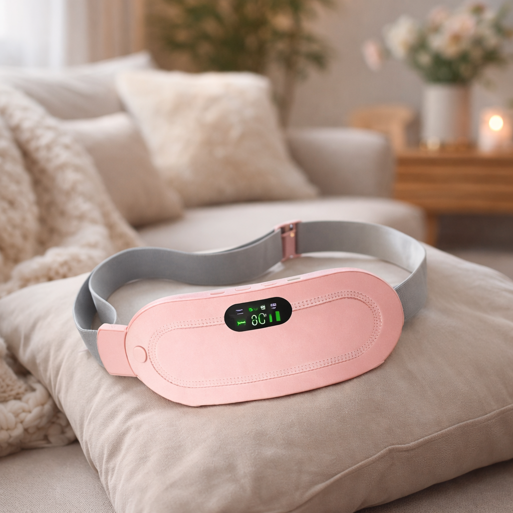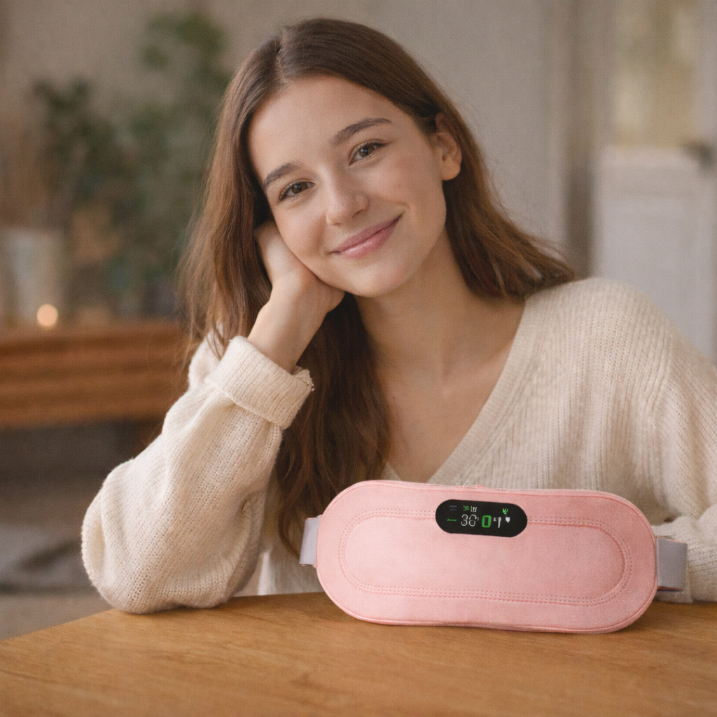 Menstria est une ceinture chauffante et massante conçue pour aider à réduire les crampes menstruelles et apporter un réel confort au quotidien.